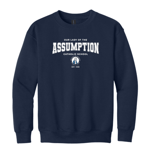 Navy hooded sweatshirt with crewneck. 8-ounce, 50/50 cotton/poly.